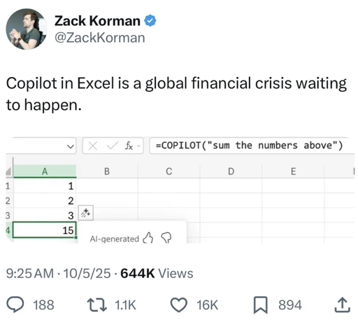 irelephant [he/him]@programming.devMEnglish · 2 days agoWe put the Thing That Can't Do Numbers™ in your spreadsheetsprogramming.devimagemessage-square0fedilinkarrow-up11arrow-down10