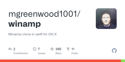 cantankerous_cashew@lemmy.world · 1 day agoWinamp clone in swift for macOSplus-squaregithub.comexternal-linkmessage-square1fedilinkarrow-up118arrow-down11