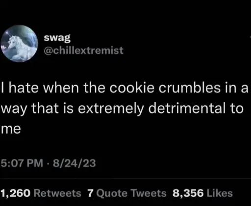 When I hear that’s the way the cookie crumbles in the back of my head, mocking me