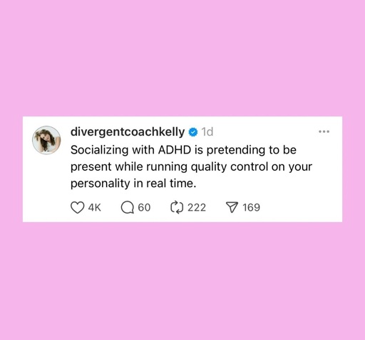 This is just masking and it’s exhausting. It’s so much more fun and relaxing to spend time with my ADHD friends