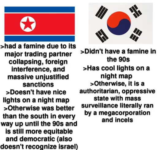 I don’t see praise of north Korea. Just criticism of South Korea. But, of course, tankie just means any critism of the West and its vassels.