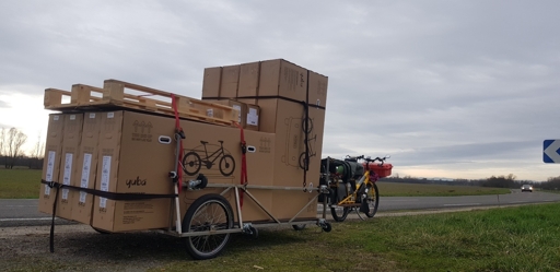 It’s an electric longtail and can carry a 300kg europallet, plus the toolbox on the front, plus an extra person or material on the bike rack!