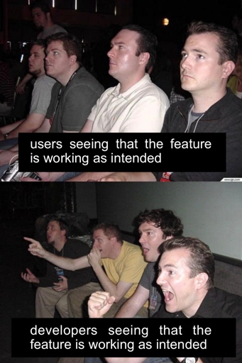 Also should have one with sales/marketing/management suggesting a bunch of other things it should do instead or in addition. That’s where you’re feeling like a badass because you did this cool thing. Then a couple seconds later you’re like: my cool thing … wasn’t cool enough? ☹️ Could be the same meme but with the panels swapped.