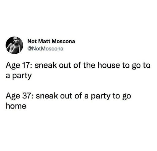 Age 42: sneak out of my own party to go to bed