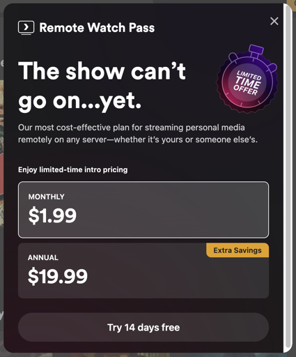 I’d be happy to pay for Infuse if the lifetime wasn’t AU$150, and I just outright reject paying a subscription for an app for using something FOSS, even if it’s only AU$20/year. A lifetime license that’s 3-5yrs of a yearly sub is much more reasonable.