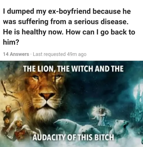 If you’re comfortable with abandoning a spouse over health issues, the marriage was a sham from the get go. Like, what are you doing at the ceremony? Making vows with your fingers crossed behind your back? 🤞🤞🤞