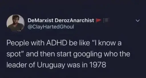 Stamets@lemmy.dbzer0.com to ADHD memes@lemmy.dbzer0.comEnglish · 9 days agoAparicio Méndezlemmy.dbzer0.comimagemessage-square17fedilinkarrow-up1347arrow-down14