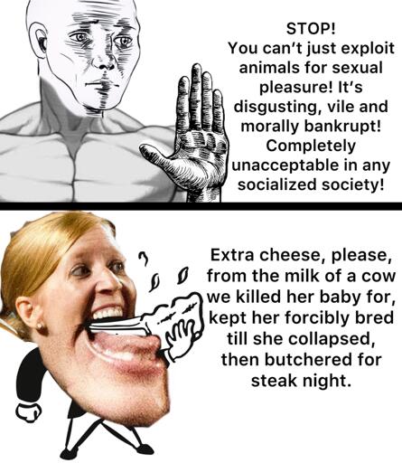 arrow-up1-29arrow-down1imageFucking veganslemmy.mlphdeeznuts@mander.xyz to Memes@lemmy.mlEnglish · 6 days agomessage-square13fedilink