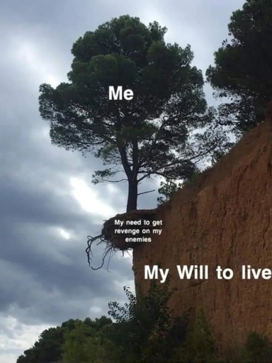 See, I’m the other way around. My will to live is the only thing keeping me from getting revenge on my enemies.