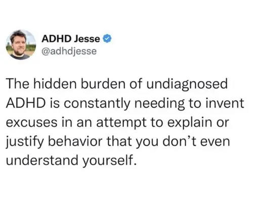 Hell, even with a diagnosis, I still have to make up excuses for people without ADHD who don’t seem to grasp that there’s more to it than just forgetfulness. This is an issue even among friends and family.