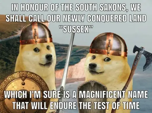 sussex and other places like essex and middlesex have some suffix that signifies “town” or something, presumably in anglo-saxon