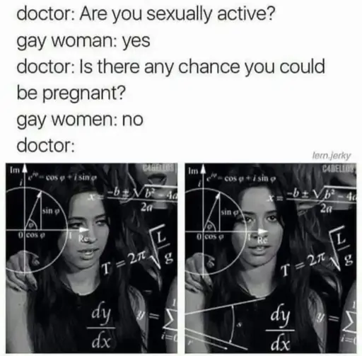 Edit: I would like to take the opportunity here to point out how this meme has an interesting highlight in the deficiency of women’s medical care. It is acknowledged that doctors NEED this information. But it is NOT acknowledged that this is a deeply personal question that many women and most men wouldn’t understand why it needs to be answered. It’s a systemic failure of the women’s doctor patient relationship that was progressing, but as we have seen recently is regressing due to much bigger legal policies.
