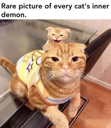 minus-squarerustydrd@sh.itjust.workslinkfedilinkarrow-up7·2 months agoCats’ inner demons are definitely orange.
