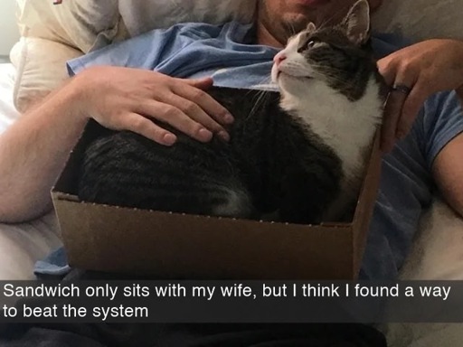 But her favorite thing is to be petted in the bathtub (not unlike a box). She meows for you to follow her to the tub, meows to indicate you need to put down a towel for comfort, then jumps in and meows for you to get in, too. Nothing makes her happier.