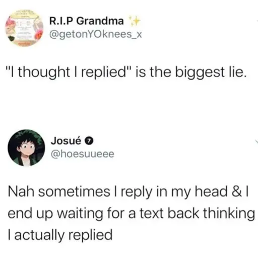 minus-squareMidsizedSedan@lemmy.worldlinkfedilinkEnglisharrow-up17·28 days agoType type type type Puts phone down Checks the next days and the message is still there. Haven’t pressed send