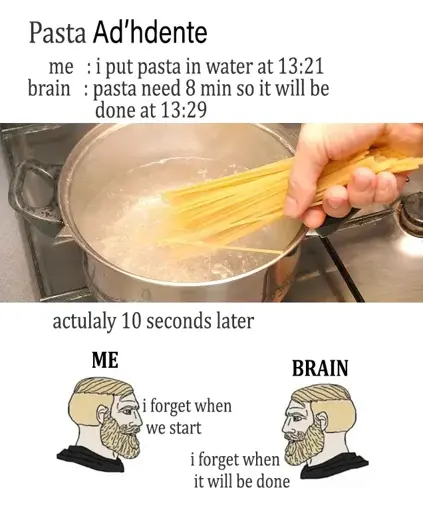 I guess my distaste for overcooked pasta is what keeps me together against the forgetfulness.