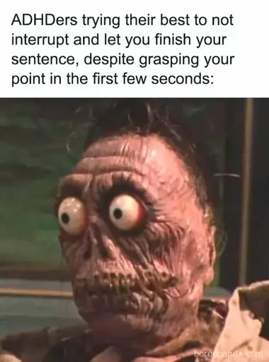 Bennyboybumberchums@lemmy.world to ADHD memes@lemmy.dbzer0.comEnglish · 1 month agoWaiting for the other person to finish...lemmy.worldimagemessage-square19fedilinkarrow-up1357arrow-down113file-text
