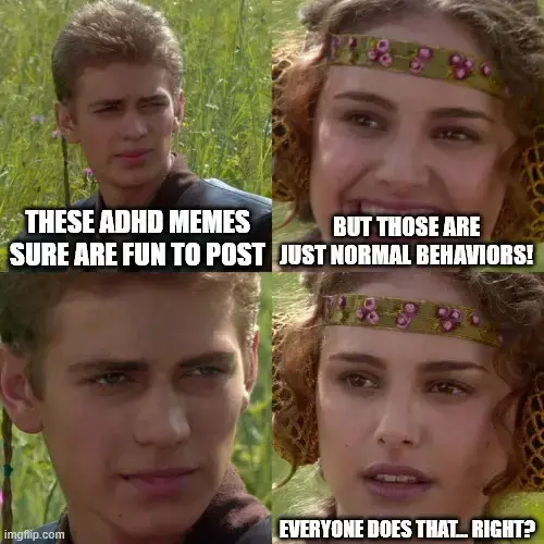 Fun fact! I first sought diagnostic testing for ADHD after so many memes resonated at a spiritual level. Brain drugs are awesome and now I won’t have to file for bankruptcy because of never actually sending any goddamn invoices to my customers