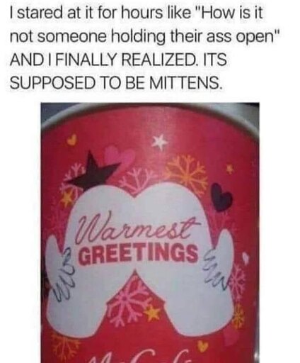 It did look like mittens until someone added the fingers with a sharpie.