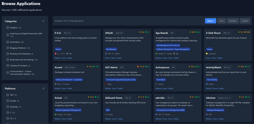 When browsing awesome-selfhosted, especially via the web version, I always got somewhat annoyed that I couldn’t filter and sort it appropriately. For example, I wanted to only show blogging software that supports Docker or PHP deployments, but I’d have to manually scan through everything and cross-reference the deployment tags.