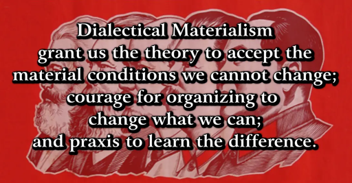 Dialectical materialism is a tool, not a religion. The text is a play on the “Serenity Prayer,” it doesn’t mean communism is a religion.