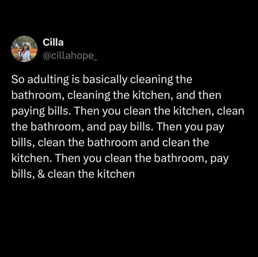Or you don’t clean at all because you’re a dumb, depressed piece of shit that’s just rotting away. :(