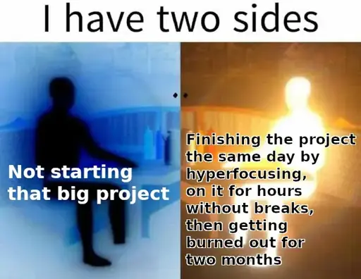 Yeah, I’m quite capable of hyperfocusing on a project for over a year AND burn out before it is ever finished!
