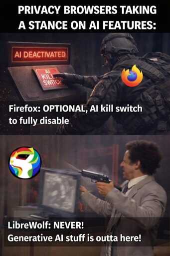 arrow-up172arrow-down1imageTwo Privacy Philosophies: Firefox vs LibreWolf on AIlemmy.mlxabd@sh.itjust.works to Memes@lemmy.mlEnglish · 1 day agomessage-square8fedilink
