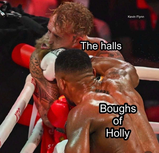 As I understand it, “the halls” got knocked out. He was “decked” by the “boughs of holly.”