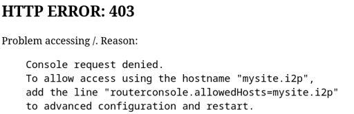 bad news? I know fuck all about I2P. assuming you’re intending to reach the “router console”, you could probably follow the suggested configuration change in the error message to Do That Thing
