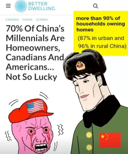 This isn’t upsetting anyone, though. Communists understand that the home ownership in China isn’t the same as it is in the west, our point is that that’s a good thing and is part of why their housing rates are much higher.