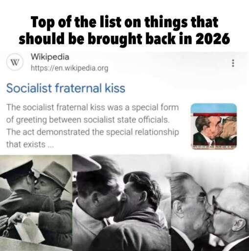 We should pass a constitutional amendment requiring every diplomat visiting the US to French kiss the sitting president at first meeting. You want to meet with Trump? You have to kiss him square on the lips.