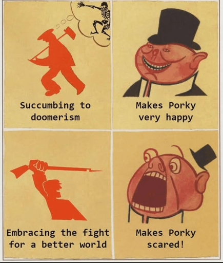 watching the overwhelming majority decry leftistism while simultaneously reinforcing propaganda to each other and opting for ineffective no-kings marches that were created by the same oligarchy that caused the problems that we’re dealing with right now makes be believe that climate change will be the only thing to force people to realize that the tankies were right… again.