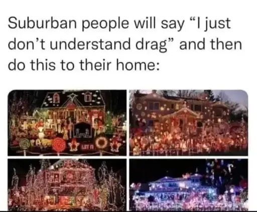 Ru Paul, please do a Christmas Lights special and judge the houses in the exact same way while the whitebread family with their two and a half kids stand there on the lawn grimacing at the camera.