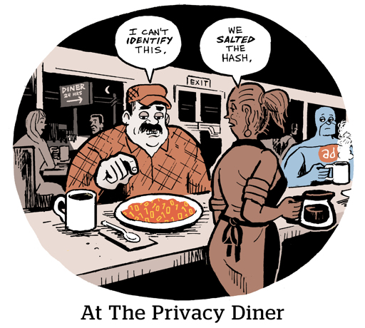 Since it’s the privacy diner and he is in superhero getup I am gonna guess he is an ad blocker