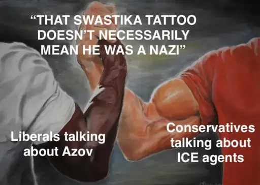 Like at this point you’re just desperate not to admit to yourself that the same media that tried to get you to support genocide in Palestine successfully tricked you into supporting nazis in Ukraine