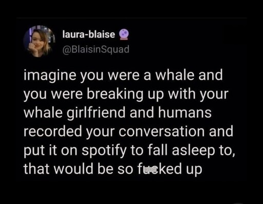That this post about whales having an argument demonstrates that censorship is flawed and brittle and fucking stupid. That anyone can get around it when it’s important to do so. That authoritarians, be they Zuckerburg or Putin, are foolish in their hubris.