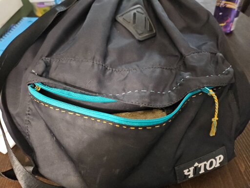 The zipper on my bag stopped working about a year ago. I had been trying to use it anyway but things kept falling out. I recently learned that hand stitching isn’t that hard, so I went out and got a new zipper. Here’s the old zipper for reference