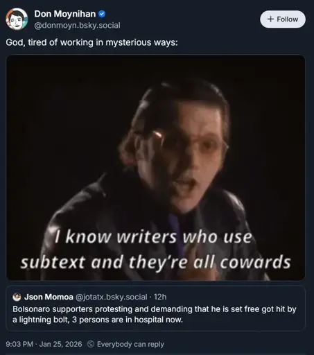 minus-square☂️-@lemmy.mllinkfedilinkarrow-up3·edit-22 days agoreally on his way out. i bet they have to come in every week and clean the maggots out.