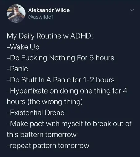 The toxic ADHD trait of truly believing you can fix yourself tomorrow.