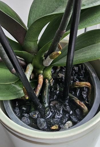 My Orchid struggled in the winter cold, and I’m a little worried about its recovery - I’m not sure why there are roots growing away from the soil (I understand the ‘silvering’ is a bad sign, although it’s only on the ones growing upwards). Does anyone have any advice about keeping the plant happy and healthy? Appreciate any tips people may have!