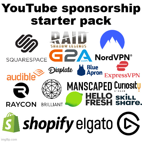 arrow-up1303arrow-down1imageYouTube sponsorship starter packlemmy.mlcm0002@lemmy.cafe to Memes@sopuli.xyzEnglish · 29 days agomessage-square83fedilinkcross-posted to: [email protected]