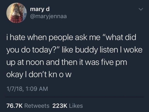 Ugh yes. And whenever someone asks, I immediately feel guilty and ashamed. And probably look guilty and ashamed, which probably makes it seem like I’ve been doing something I should feel guilty and ashamed about. But the real answer is somewhere between “I don’t know” and “I went on the internet”. 😬