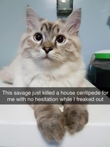 Yeah, our only remaining cat is too old to chase anything anymore, but he definitely killed a few centipedes and cockroaches in his time. Good and bad.