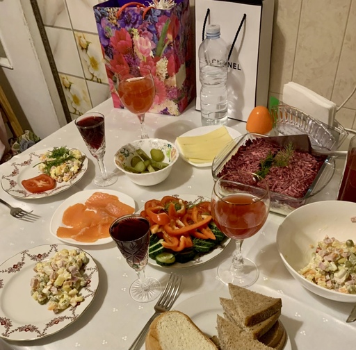 This is a table my 80-year-old mom and her best friend put together for New Year’s in Russia. They got really close after they both lost most of their friends over their anti-war stance. So they really treasure each other’s company.