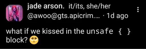 unsaferust keyword basically just lets you declare a scope in which some memory checks do not need to pass for the program to compile.Some people write their entire codebase within those parentheses.