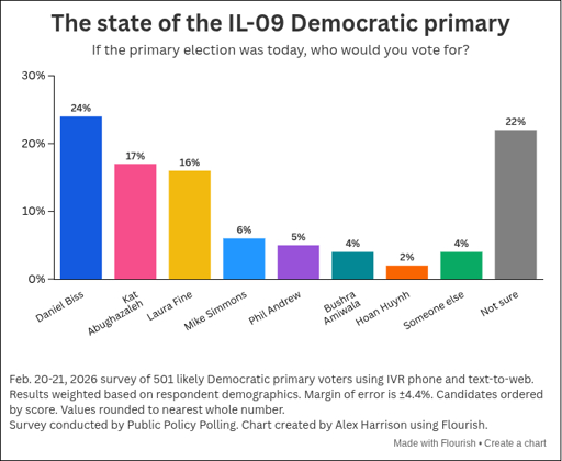 I’ve liked what I’ve seen of Kat online but she’s faced accusations of carpetbagging by locals. Biss sounds decent, so I won’t be too sad if he beats Kat even if I’d prefer another brash progressive voice in congress