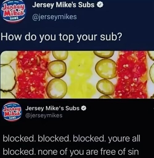 But it includes a sexual innuendo and a snarky response. I still have no desire to step foot in a Jersey Mike’s so I don’t feel like I’ve been advertised to.