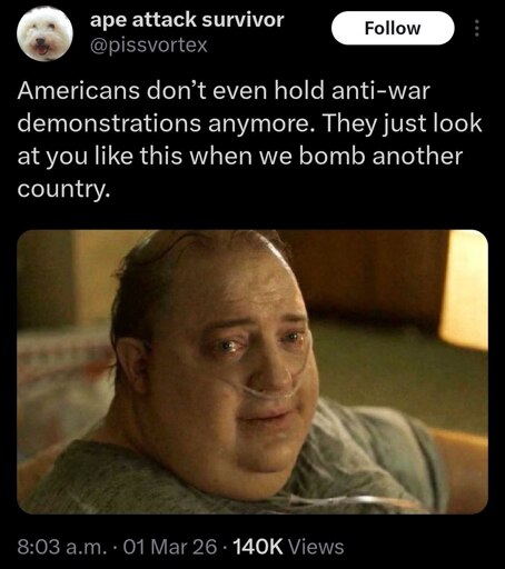 ☆ Yσɠƚԋσʂ ☆@lemmy.ml to Memes@lemmy.mlEnglish · 15 hours agoAmericans right nowlemmy.mlimagemessage-square5fedilinkarrow-up1243arrow-down112