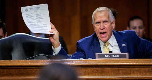 Sen. Thom Tillis, R-N.C., tore into the homeland security secretary at a hearing, saying he will hold up Trump’s nominees until he gets answers from her department.